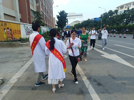▲昆骨志愿者街头送水,获得学生和家长的一致好评