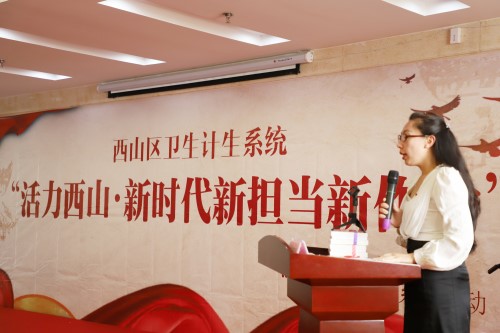 接下来,西山区人民医院的两名医护人员用诗歌朗诵的方式,抒发了热爱党、忠于党的真挚感情。她们的声音铿锵有力、气势如虹,朗诵赢得了现场的热烈的掌声。激发了广大党员热爱企业、奉献岗位的责任意识,以及坚定做好人民医疗卫生事业的决心。